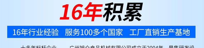 廣州旭眾食品機械有限公司是一家集科研開發,生產設計,營銷服務為一體的現代化生產企業。現代化生產車間,精湛制造技術,所產機械歷經市場重重考驗,不斷贏得海內外客戶的贊譽。