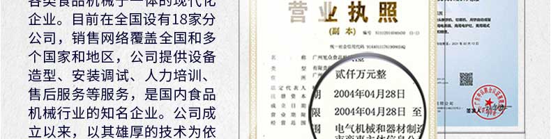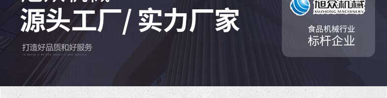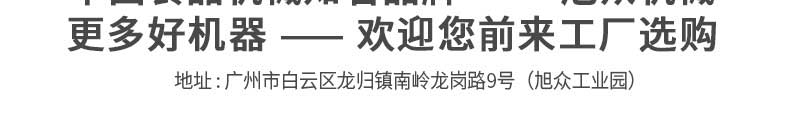 廣州旭眾食品機械有限公司是一家集科研開發(fā),生產(chǎn)設(shè)計,營銷服務(wù)為一體的現(xiàn)代化生產(chǎn)企業(yè)。現(xiàn)代化生產(chǎn)車間,精湛制造技術(shù),所產(chǎn)機械歷經(jīng)市場重重考驗,不斷贏得海內(nèi)外客戶的贊譽。